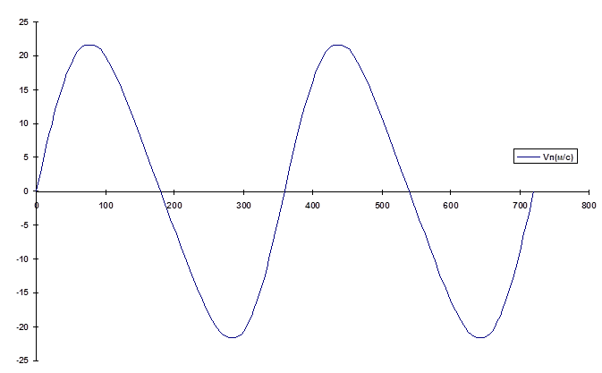 Рис.2 График зависимости скорости поршня от угла поворота кривошипа .
