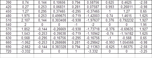 Vп | 12,89 | 20,65 | 21,2 | 16,06 | 8,31 | -8,31 | -16,06 | -21,2 | -20,65 | -12,89 |