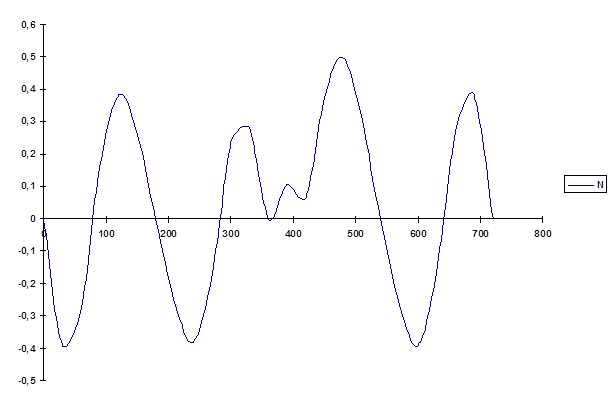 Рис.5 График радиальной силы N в зависимости от угла поворота кривошипа .