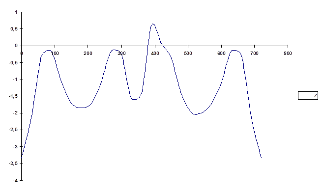 Рис 6. График зависимости нормальной силы от угла поворота кривошипа.