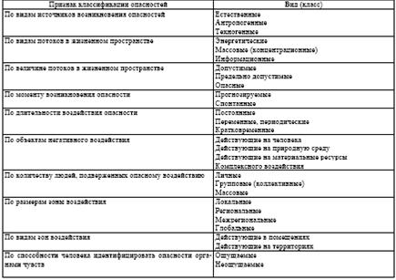 Все опасности классифицируют по ряду признаков (табл. 1).