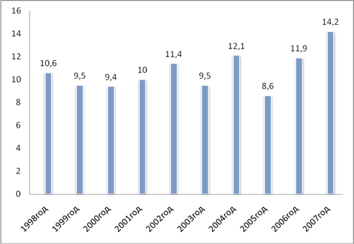 Рис. 1. Изменение значений ИЗА г. Перми за период 1998–2007 гг.