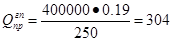 Qппг/п – розрахункова витрата господарсько-побутових стічних вод підприємства, м3 /доб; П — продуктивність підприємства, од. продукції/рік (400тис)qпр – питома норма витрати промислових стічних вод підприємства, що підлягають очищенню, м3 /од. продукції (0.19м³/добу)