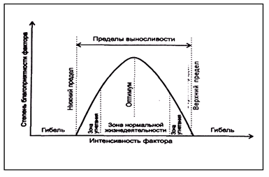 Рис. 1 Зависимость действия экологического фактора от его интенсивности