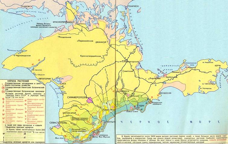 Равновесие в природе поддерживается законами. В Крыму созданы 4 новых заповедника и 16 государственных заказников, кроме того, охраняются государством 13 памятников природы, 102 заказника, заповедных урочища и памятника природы и 23 заповедных парка.