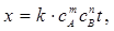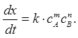 где v — скорость; K — константа скорости каталитической реакции; сА, сВ и скат — концентрации реагирующих веществ и катализатора; m, n и р — показатели степени при концентрациях реагентов и катализатора (обычно р = 1).