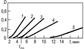 Концентрацию катализатора можно определять по длительности индукционного периода tинд., по истечении которого скорость реакции становится заметной (рис. 2). Этот способ является разновидностью метода фиксированной концентрации. Индукционный период наблюдается не только в реакциях Ландольта, но и в автокаталитических реакциях, а также в реакциях, когда в начальный период изменяется соотношение форм катализатора. Длительность индукционного периода связана с концентрацией катализатора зависимостью