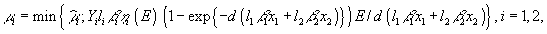 – КПД фотосинтеза i -го вида клеток; Yi – величина, обратная калорийности биомассы i -го вида клеток;E – мощность ФАР (фотосинтетически активной радиации), падающей на поверхность культуры; d – толщина слоя культуры в кювете культиватора (приведено выражение для удельной скорости μi в случае лимитирования совместного роста двух видов только энергией света) (Абросов, Ковров, 1977).