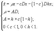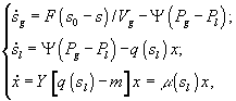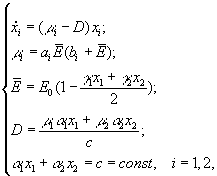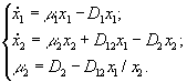 где x1, x2, s – концентрации двух видов фитопланктона и минерального вещества, выраженные в единицах лимитирующего биогенного вещества;