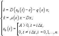 – максимальная скорость роста; s – концентрация лимитирующего ресурса в среде;Ks – константа полунасыщения при лимитировании данным субстратом; s0 – величина концентрации лимитирующего субстрата на входе в культиватор; D – скорость разбавления, равная отношению скорости поступления питательной среды к объему культуры; Y – экономический коэффициент (выход биомассы на единицу потребленного субстрата).
