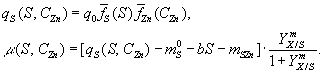 , описывающий влияние цинка на скорость потребления энергетического субстрата qS, записывают как