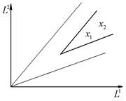 область значений L1 и L2, при которых виды могут сосуществовать, задается сектором с вершиной в точке (