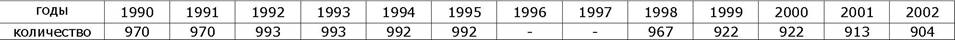 | Наименов ание | 1990 | 1991 | 1992 | 1993 | 1994 | 1995 | 1996 | 1997 | 1998 | 1999 | 2000 | 2001 | 2002 |