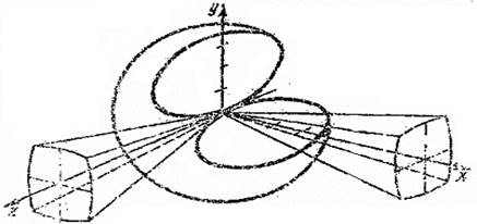 Рис. 2.Диаграмма трехмерного распределения интенсивности комбинационного рассеяния как функции угла: лазерное излучение направлено вдоль оси y и поляризовано в направлении оси х; телесные углы, под которыми собирается рассеянный свет, расположены вдоль осей x и z.