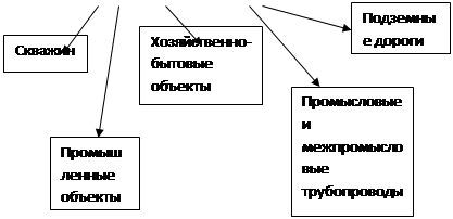 Следует отметить, что элементы подсистемы, связанные с бурением и сооружением скважин, промышленными и хозяйственно-бытовыми объектами характеризуются точечным взаимодействием с окружающей средой, а промысловые и межпромысловые трубопроводы, подземные дороги – соответственно, с линейным. В то же время взаимодействие с окружающей средой на уровне всего месторождения является рассредоточенным и для оценки его количественных параметров на этапе синтеза полсистемы необходимо использовать модели интерференции.