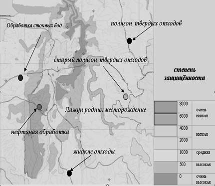 Нашими исследованиями установлено загрязнение грунтовых вод вблизи одного из этих полигонов, расположенного на песках, известняках и имеющего близко расположенные грунтовые воды.