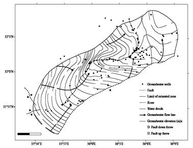 Гидрогеологические особенности области полигона Руссайфа: полигон расположен в пределах бассейна Аммана-Зарка, который считают самым важным бассейном грунтовой воды в Иордании (рис. 4). Возобновимая грунтовая вода составляет в среднем 88 миллионов м3.ежегодно в этом бассейне.