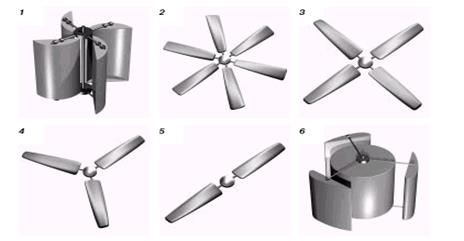 2).вітродвигуни з вертикальною віссю обертання (карусельні: лопатеві (1) і ортогональні (6).