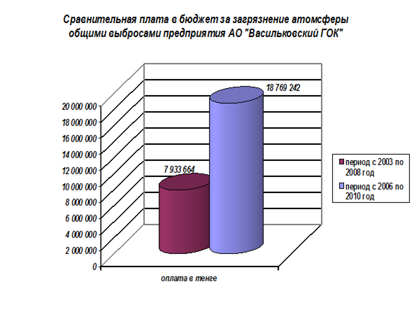 Таблица 25 — Сравнительная плата в бюджет за загрязнение атмосферы общими выбросами предприятия АО «Васильковский ГОК»