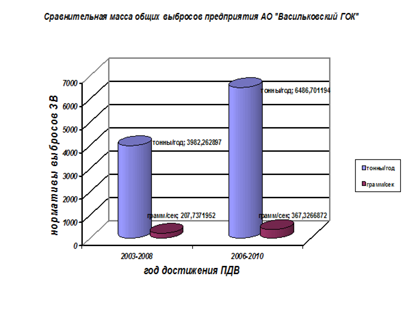 Таблица 26 — Сравнительная масса общих выбросов предприятия АО «Васильковский ГОК»