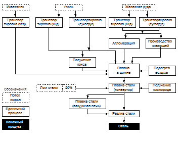 Для более четкого представления о приведенных выше понятиях дан пример схемы продукционной системы производства стали.