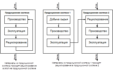 Рис. 3 — Примеры продукционных систем с рециклированием материалов