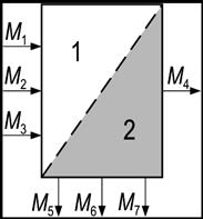 — в случае продукционной системы с открытым контуром переработка материалов (или продукции) осуществляется в другой продукционной системе, тогда распределение данных осуществляется в соответствии с процедурой, изложенной выше на основе физических свойств материалов, их экономической оценки (например, стоимости), количества возможных циклов переработки (рис. 3).