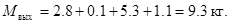 Мвы =М1 +М2 +М3 = 2,5+2,6+4,2=9,3 кг, (1.5)