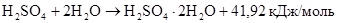 Из полученного мольного соотношения воды и серной кислоты, видно, что количество воды в три раз больше, чем серной кислоты, поэтому разбавление может рассматриваться по реакциям 2 или 3 (путь 2 и 3). Рассчитаем количество гидратов, образовавшихся при разбавлении, с двумя и четырьмя присоединенными молями воды: