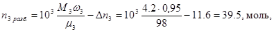 Количество молей серной кислоты (n 3 ), поступающей на разбавление, в соответствии с материальным балансом производства и учетом начального разбавления определяется по выражению: