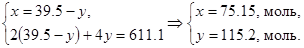 Где x — количество молей H2 SO4 по реакции 2, моль;