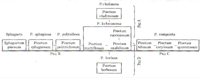 Рис. 1. Класифікаційна схема соснових типів лісу (В. М. Сукачов).