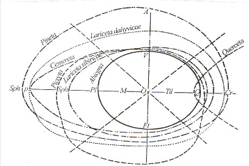 Рис. 2. Узагальнююча класифікація типів лісу – едафофітоценотичні ареали деревних порід В. М. Сукачова.
