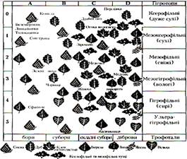 Рис. 3. Едафічна сітка – основа класифікаційної схеми типів лісів за П. С. Погребняка.