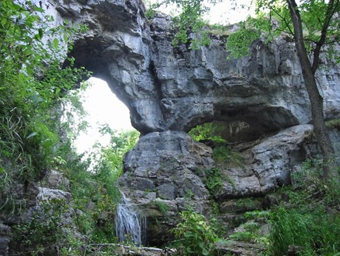 Постепенно кровля пещеры становилась всё тоньше и наконец обрушилась, часть же её осталась висеть в виде моста.