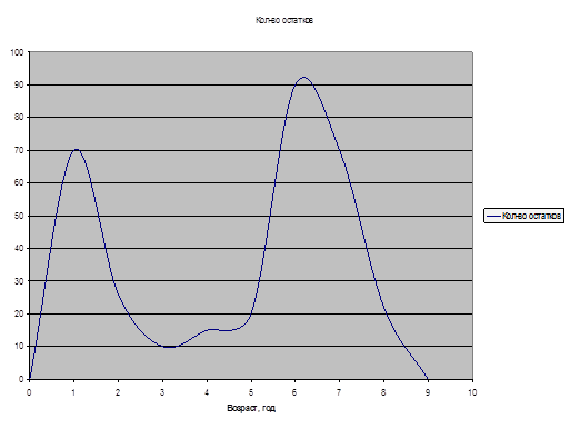 Построить кривую выживания по данным определения возраста остатков животных. Определить среднее время генерации.