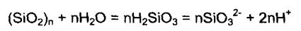 Количество подаваемой шихты на компактирование составляет 300-1200 кг/м3 и регулируется вначале «грубо», например, шлюзовым затвором 3 и затем «плавно» вибрационным питателем 4. Толщину ленты устанавливают в зависимости от максимальных размеров наиболее твердого компонента шихты, например, кварцевого песка с твердостью по шкале Мооса 6,5-7 ед., которую регулируют в пределах dmax. Скорость компактирования шихты при этом устанавливают в диапазоне 0,02-5,2 м/с. За счет стабилизированного столба шихты над валками, сил внутреннего трения частиц шихты и внешнего трения на границе раздела «шихта-валок» происходит процесс разрушения отдельных частиц шихты. Наблюдается процесс измельчения отдельных компонентов, имеющих твердость по шкале Мооса 3-9 ед. Происходит изменение формы их зерен от сферической до игольчатой и увеличивается удельная поверхность шихты. Следовательно, ее активность также повышается: а) в холодном состоянии при компактировании растет прочность и плотность ленты, уменьшается количество просыпи, то есть растет производительность по готовому продукту; б) в горячем состоянии при стекловарении наблюдается значительное ускорение процессов растворения тугоплавких зерен шихты вследствие нарушения их структуры и уменьшения размеров. Таким образом, процесс компактирования сопровождается при этих режимах механическим измельчением отдельных компонентов шихты. Образуются новые поверхности со специфическими центрами с преобладанием отрицательно заряженных ионов О2 ». Вследствие гидролиза на поверхности таких компонентов появляются также отрицательные заряды, например, у кварцевого песка по следующей схеме: