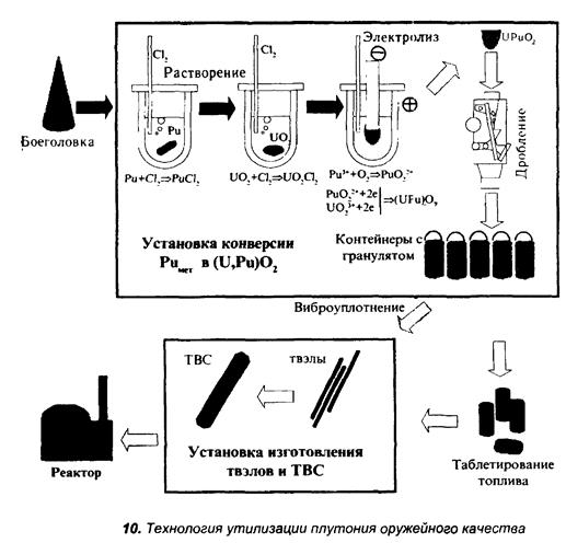 Разработан простой технологический процесс перевода плутония оружейного качества в смешанное уран-плутониевое топливо ядерных реакторов типа БН и ВВЭР, основанный на использовании пирохимических процессов в расплавленных солевых системах.