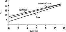 Бинарные композиции получали путем взаимодействия частично гидролизованного ПАА(молекулярная масса 8-105 а.е.м.) с тэтраэтиленгликолем (ТЭГ) и полиэтиленгликолем-115 (ПЭГ-115) в водной среде при атмосферном давлении и постоянной температуре 40 «С при периодическом перемешивании в течение часа. Для ПЭГ-115 и ТЭГ характерным является идентичность структурных групп, но различная длина цепей. Для разбавленных растворов полимеров важно было оценить, насколько изменилась удельная кинематическая вязкость при переходе от моно- к бинарной композиции.