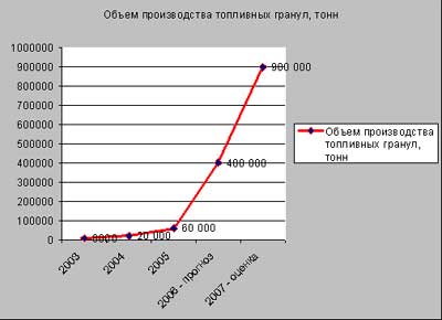 Учитывая, что темпы продаж на этом рынке не снижаются, а средняя скорость ввода биотопливного завода в строй составляет около 12 месяцев, можно ожидать, что к концу 2006 года в нашей стране будет функционировать не менее 60 производств топливной гранулы, а в 2007 году их число может достичь 120 и более.
