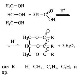 Процесс получения пластификаторов на основе сложных эфиров глицерина авторы статьи исследовали в лабораторных условиях. Было установлено, что среди многообразия способов синтеза сложных эфиров технически простым является синтез, который протекает по следующему уравнению реакции [12]: