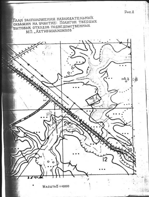 По результатам анализов на территории свалки отмечено небольшое превышение по нефтепродуктам и грунтовых вод из скважины №2, расположенной на территории свалки, и по хлоридам из скважины №1, по отношению к скважине №3, являющейся фоновой.