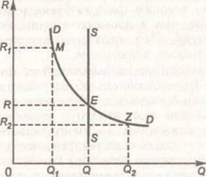 Спрос на землю как фактор производства D зависит от ее предложения S и величины ренты R. Это можно изобразить графически (рис 1)