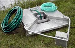 Скиммер пороговый (СП) предназначен для сбора с поверхности воды светлых нефтепродуктов, различных масел и сырой нефти. Скиммер изготовлен из алюминиевого сплава АМГ-5 на базе пневмоприводного насоса.