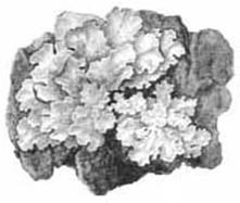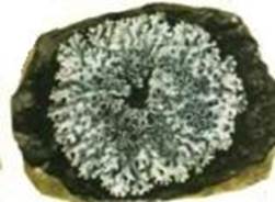 Рисунок 1 – основные типы слоевищ лишайников: а – корковые, б – листоватые, в — кустистые