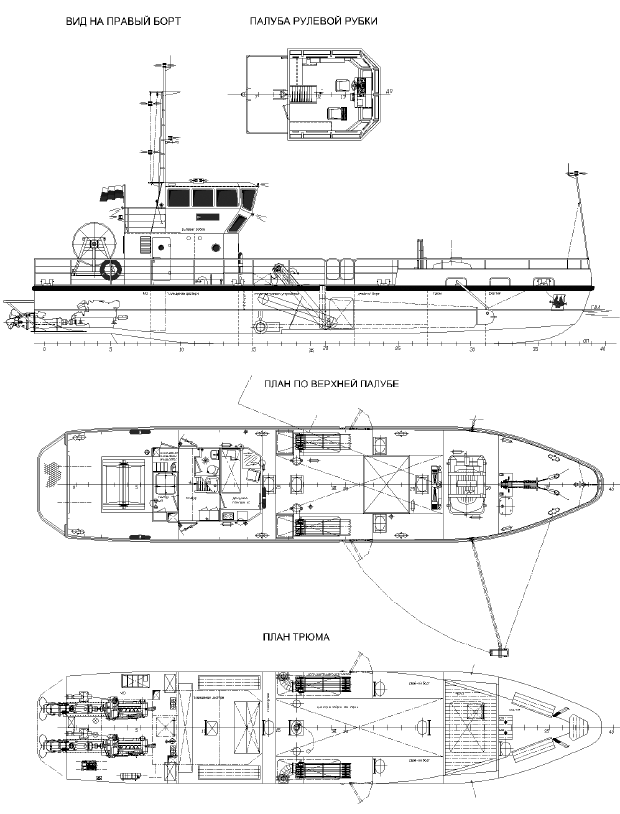 — транспортировка и постановка плавучих боновых заграждений, — прием с судов и транспортировка к местам переработки льяльных вод и мусора, — выполнение работ по ликвидации загрязнения акватории мусором и разливов нефтепродуктов с температурой вспышки выше 60о. Закрытое стальное судно водоизмещающего типа, гладкопалубное, с одноостровной рубкой, с корпусом, разделенным пятью поперечными переборками на шесть водонепроницаемых отсеков, с двухвальной дизельной энергетической установкой и водометными движителями, расположенными в корме. |
