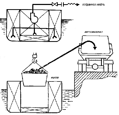 Для очистки акваторий и ликвидации разливов нефти используются нефтесборщики, мусоросборщики и нефтемусоросборщики с различными комбинациями устройств для сбора нефти и мусора.