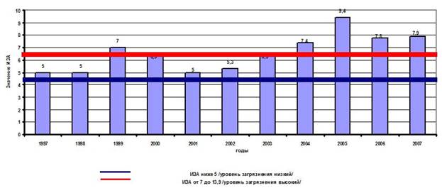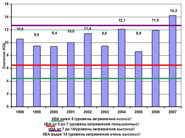 Рис.1. Изменение значений ИЗА г.Перми за период 1998-2007 гг.[5]