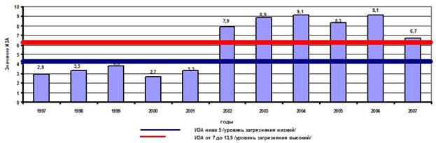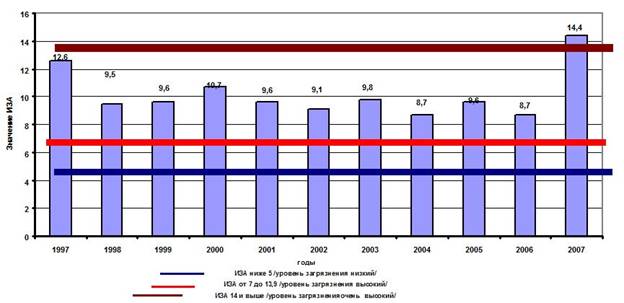 Рис.4. Изменение значений ИЗА г. Губаха за период 1997–2007 гг.[14]