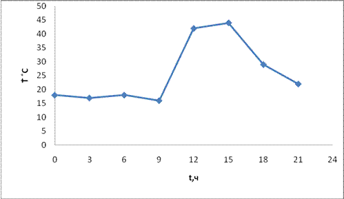 Рис.1. Суточный ход температуры поверхности почвы.